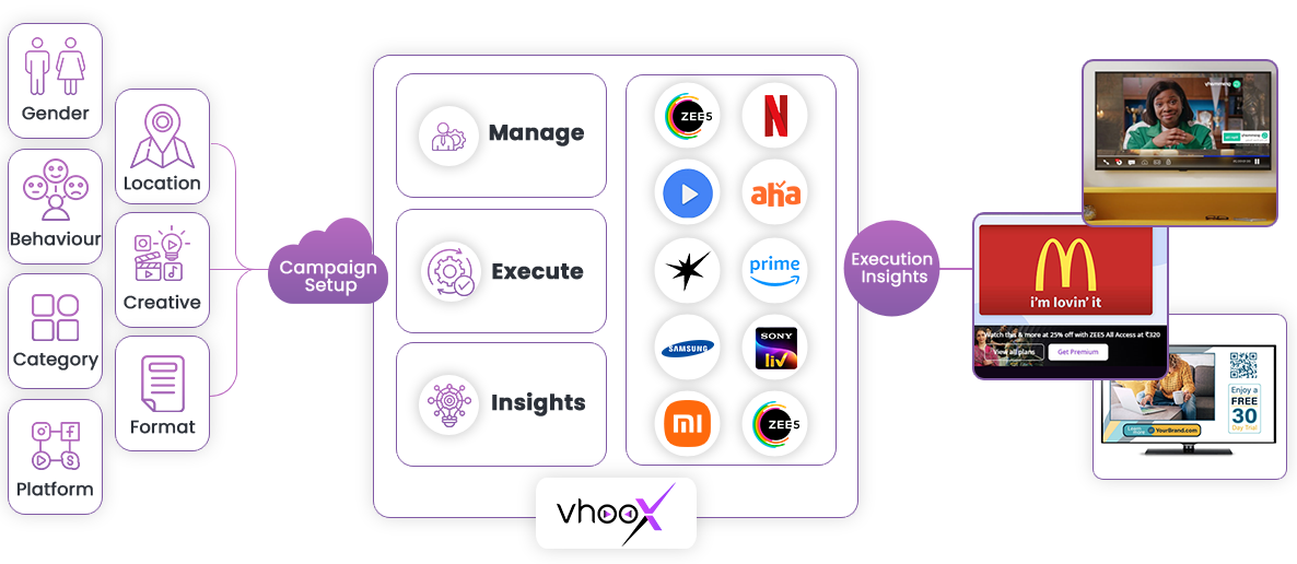 Half of Indians watch TV on streaming services, while the other 50% still watch cable and traditional broadcasts. When you can have the entire audience, why settle for half of it? Vhoox fills the gap between the long-lasting reach of traditional TV and the digital future.